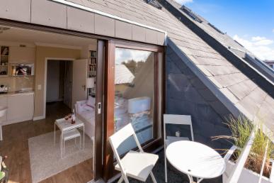 geschützte Dachterrasse mit seitlichem Dorfteichblick